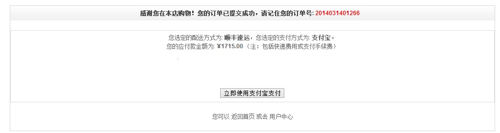 • 支持在线支付,下单后能自动转到在线支付接口。